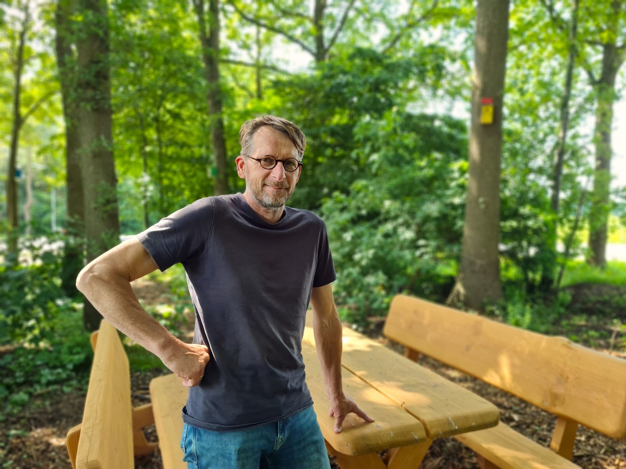 Eén van de jongens kwam met het idee om het fietsknooppunt op te knappen. Gestort tuinafval en brandnetels ‘sierden’ de plek. Samen met Henk tekenden ze een plan. De eerste stap was gezet! Met hulp van de ideeënmakelaar en Welzijn Lochem kwam er een heuse onderhoudsovereenkomst met wat budget én kregen ze goedkeuring op hun plan van de gemeente. Circulus deed het ‘grove werk’. En de jongens…..die kruiden met snippers, knutselden nestkastjes en insectenhuisjes. Ze vroegen aan hun nieuwe buren of ze een picknickbank wilden maken. Zo werd het een project van de omgeving, dat in mei in het bijzijn van buren en wethouder geopend is. Een buur die niet aanwezig kon zijn, stuurde een kaart met een alleszeggende tekst.